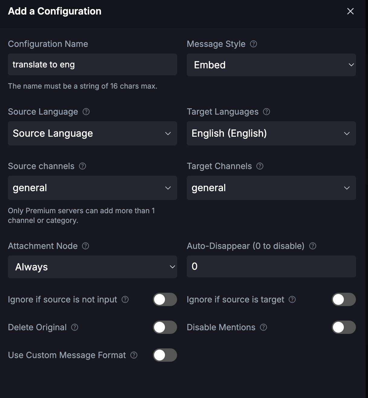Beyond text, iTranslator also integrates text-to-speech (TTS) and speech-to-text (STT) capabilities, enabling voice channel users to transcribe speech into text or convert written messages into spoken audio, although this feature is only available in the premium version. This makes it a comprehensive tool for accessibility and international communities.