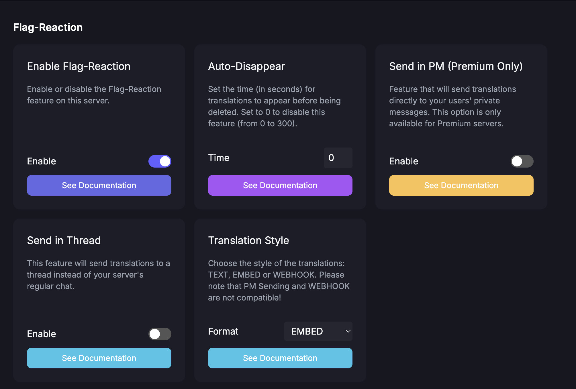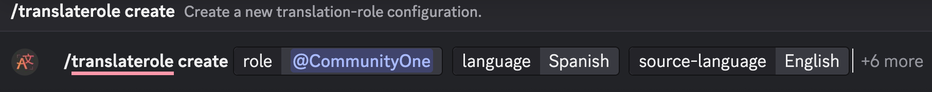 Setup is straightforward: after inviting the bot, admins can use slash commands like /translate to define translation rules.