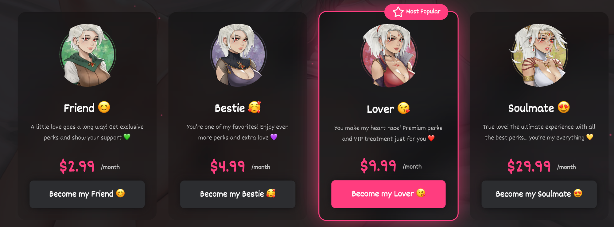 - They are a lot more addictive: The bot's internal prompt is fine-tuned to let your members chat with the bots for as long as possible, rather than directing the conversation to real humans.