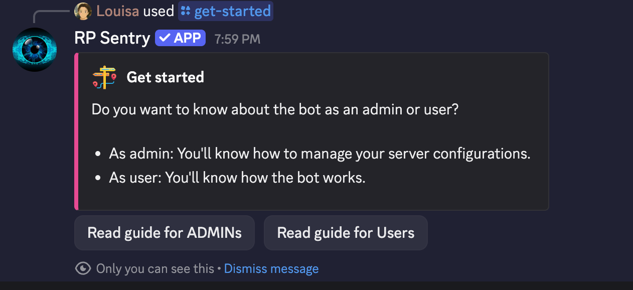 - Many bots will DM you or post a setup message once added, with either a link to a dashboard or some default instructions.