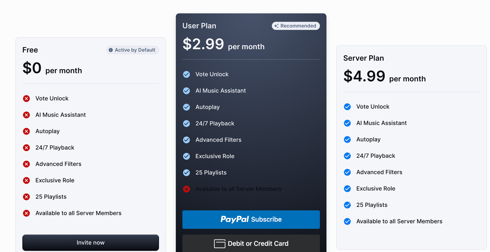 - No Ads or Branding: Free bots sometimes ask your members to vote on top.gg. Paid typically lets you white-label or removes those.