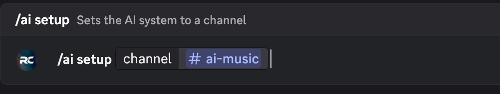 Setup requires inviting the bot, granting voice channel permissions, and using /ai setup to configure an AI music channel.