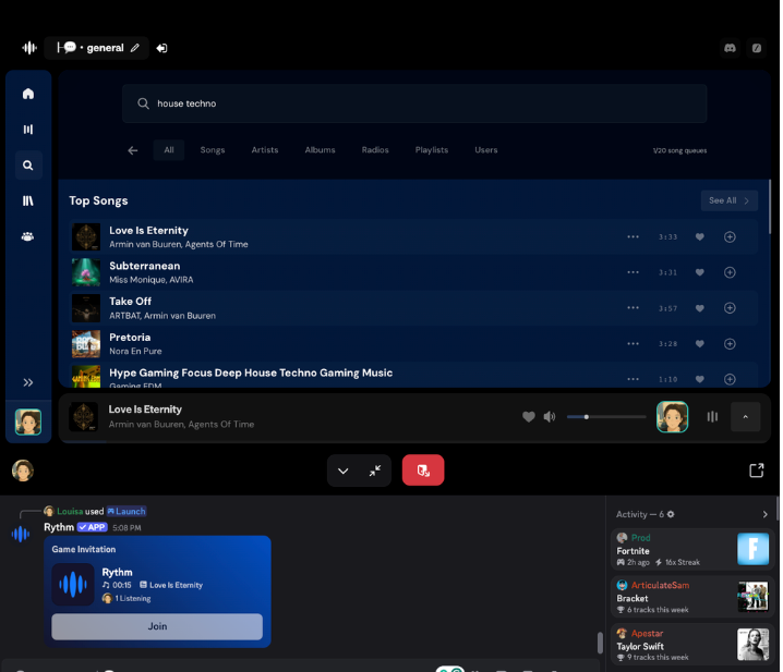 | Rythm | Large/formal communities wanting legal music | Fully licensed, modern UI, group listening sessions | Limited free, Premium required |