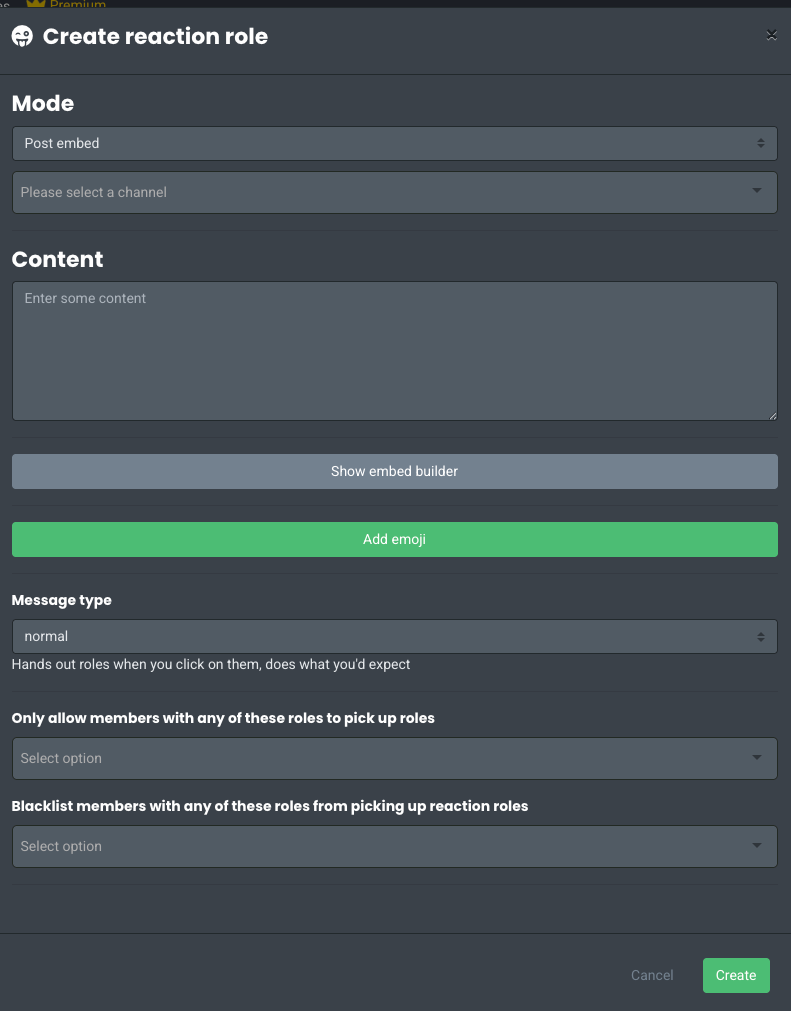 - Reaction Roles: Create a reaction role message by selecting a channel and adding roles with corresponding emojis or buttons. Members can then self-assign roles with a click.