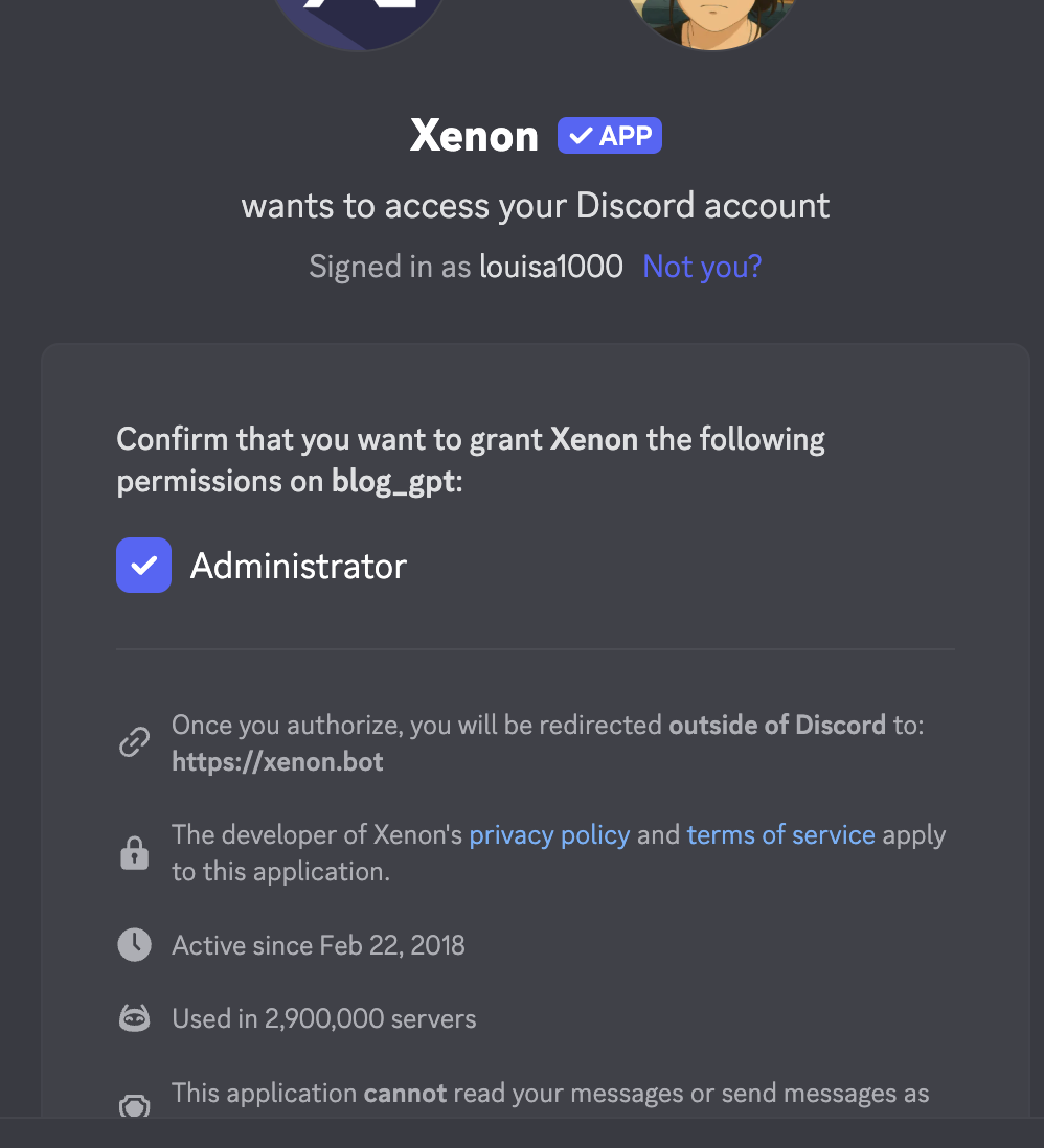 - Use official sources – Only install bots from the Discord App Directory, top.gg or the bot’s official site. Avoid random invite links shared in DMs. Try to avoid inviting a bot directly from another server, especially if you don't trust the server.