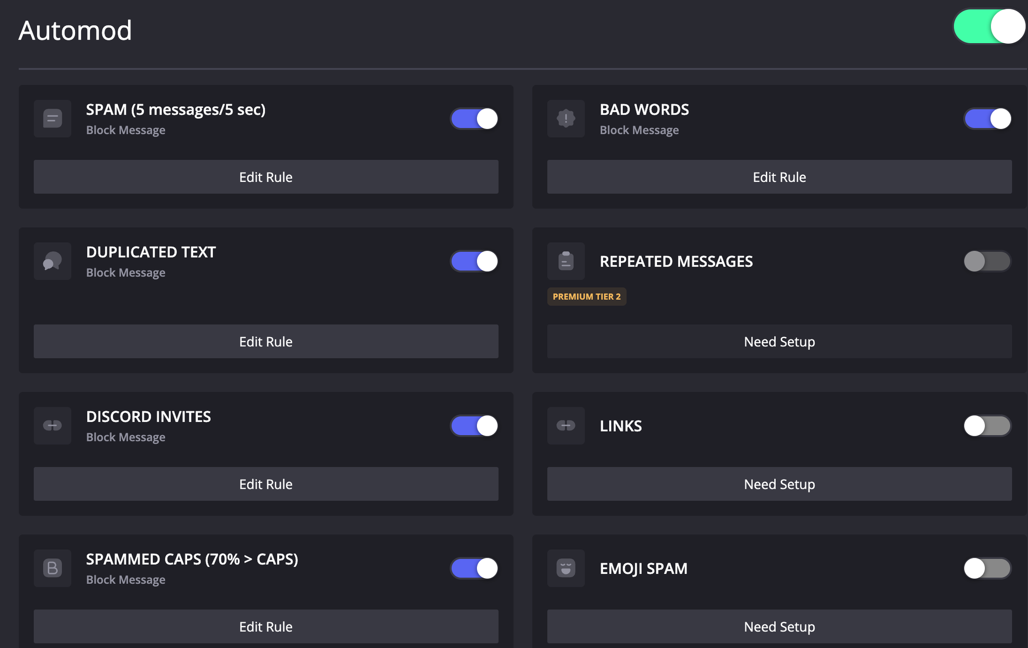 | YAGPDB | Large servers needing advanced automod | Highly customizable automod with regex filters & strike system | Free (core), Premium $3.50/server/mo |