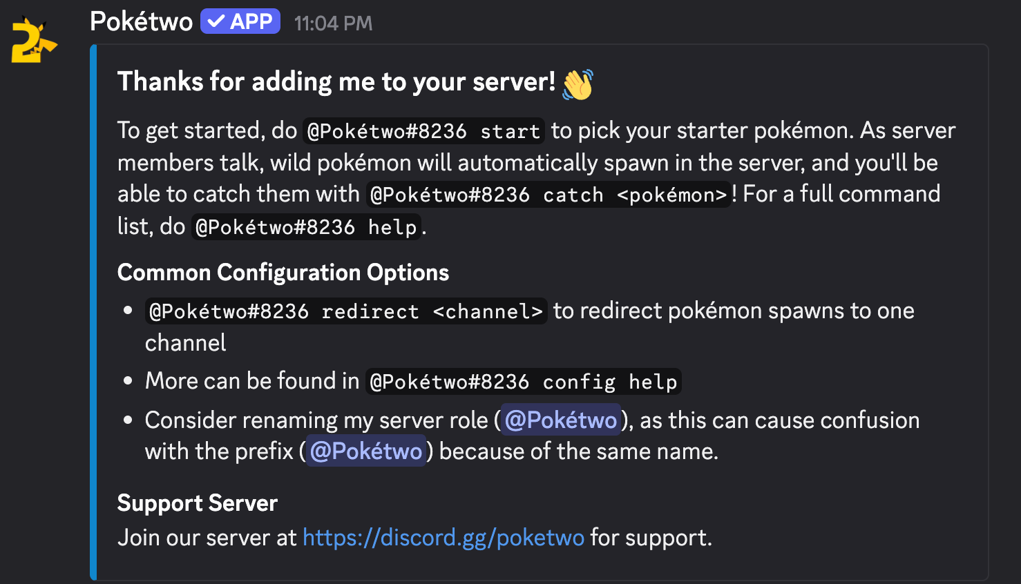 Any community with a lot of Pokémon fans or gamers. It’s perfect for anime/manga servers, gaming clans, or general hangout servers where a shared game can bring people together. Even if your server’s theme isn’t explicitly Pokémon, Pokétwo can serve as a fun side activity that keeps people around. For example, a tech forum Discord might still enjoy catching Pokémon during lulls in tech discussion.