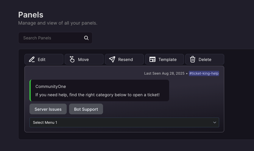 - Panel Configuration: Easily configure ticket panels with custom options to suit specific needs.