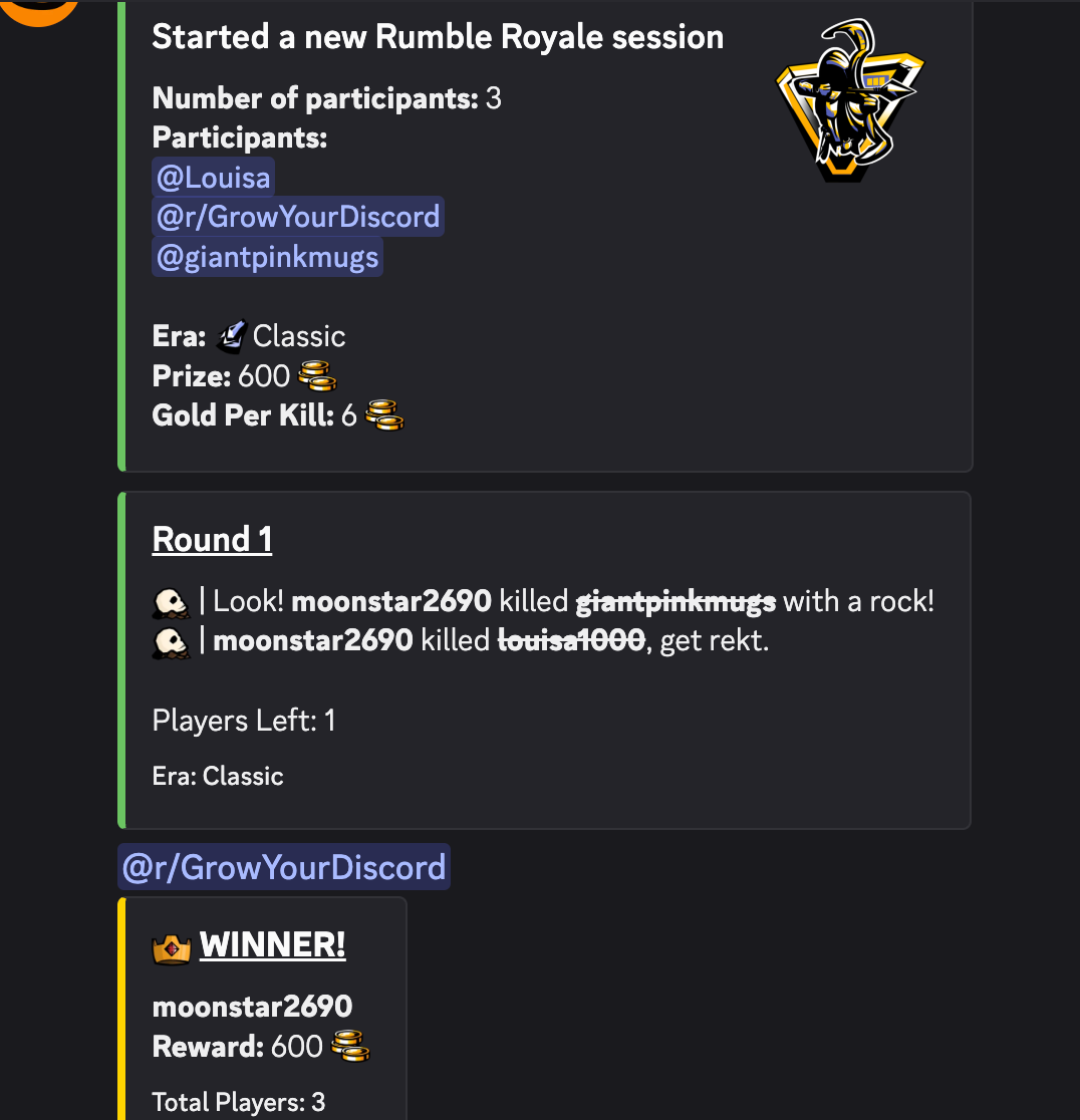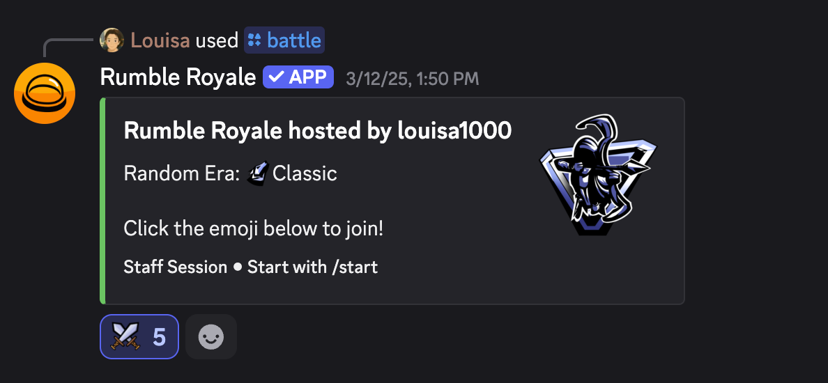 Choose Rumble Royale for intense battle royale gameplay or EPIC RPG for PvP dungeons and rankings. - 🌸 Anime or fandom-based server?