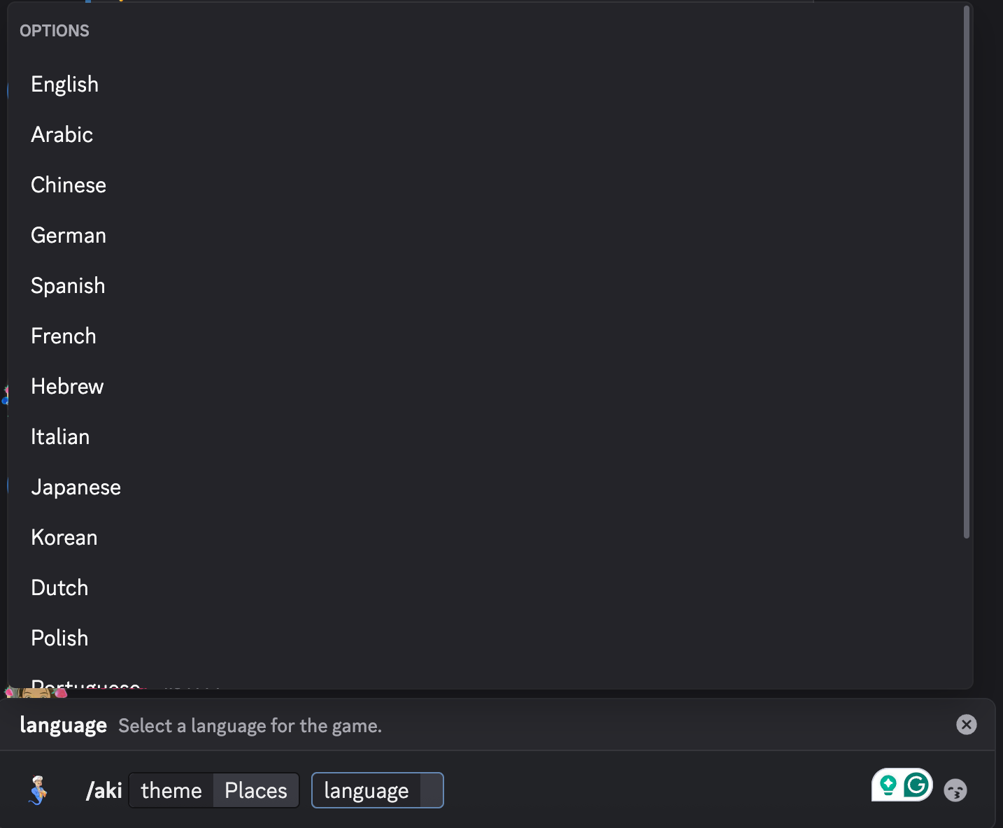 (Often, the bot doesn’t have tons of user-facing commands; it’s more about automatically running the game once started. The core interaction is guess input, which is free-form.)