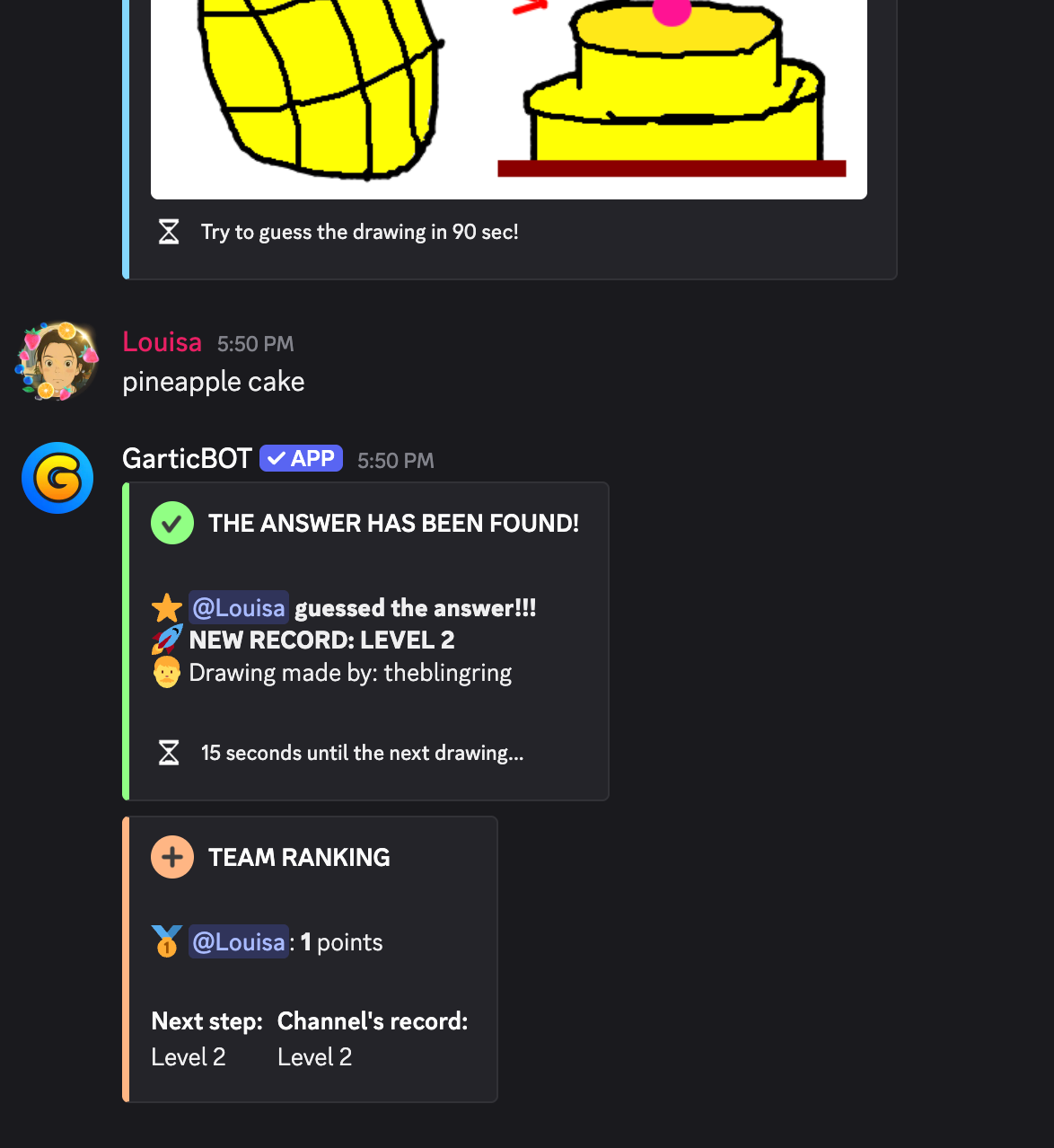 - Introduce the Game to Members: Announce the new game channel and how to play. Example: “We now have Gartic drawing game in the server! Go to #gartic-game and type