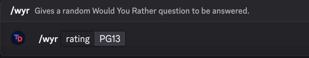 - Adaptable to Audience: The inclusion of PG to R ratings is a big plus. You can safely use it in a SFW server and trust it won’t suddenly drop an adult question. Conversely, in adult groups, you can ramp it up. This flexibility makes the bot suitable for a wide range of communities.