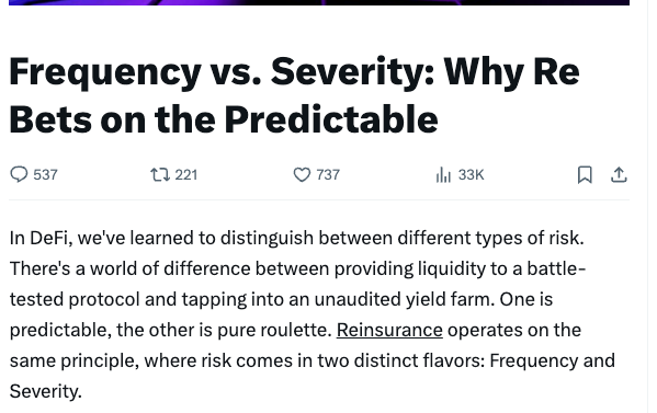 Under Chaz and Steph, Re is that project. And here's the wild part: Re is a B2B reinsurance platform. Reinsurance is, frankly, boring. Yet their Discord has 900+ daily active users who actually care about the project. No token. No airdrop coming. Nothing. The entire engagement is organic.