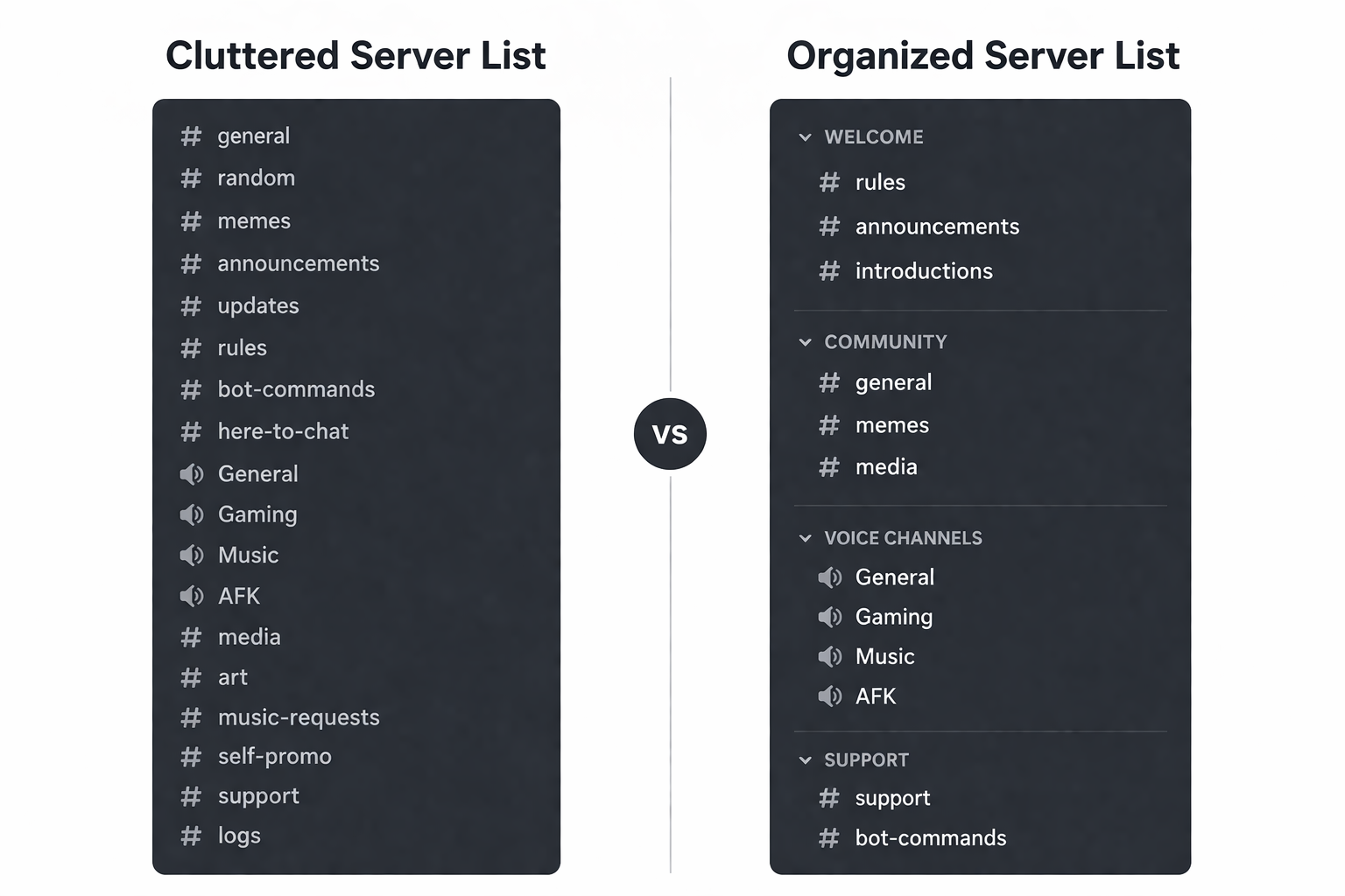 - Structure your server with clear categories and essential starter channels to prevent new member confusion and encourage participation.