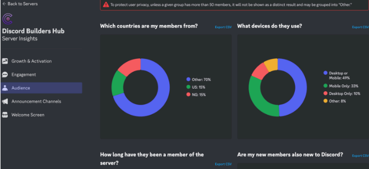 While Discord may not be the most intuitive tool for daily operational management (with a 7day lag and only available for servers with 500+ members), it should not be overlooked. The unique insights it provides can be instrumental in tailoring your strategies to better meet the needs and preferences of your users, ultimately fostering a more engaged and vibrant community.