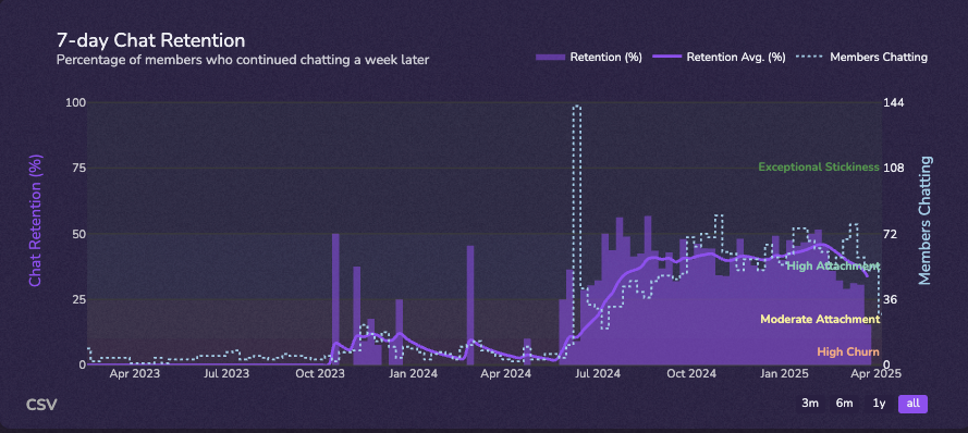 By evaluating chat retention analytics, you can identify if a substantial proportion of newcomers stay actively involved, or whether they disengage after their introductory message. This insight is key to fostering genuine interaction and long-term participation.