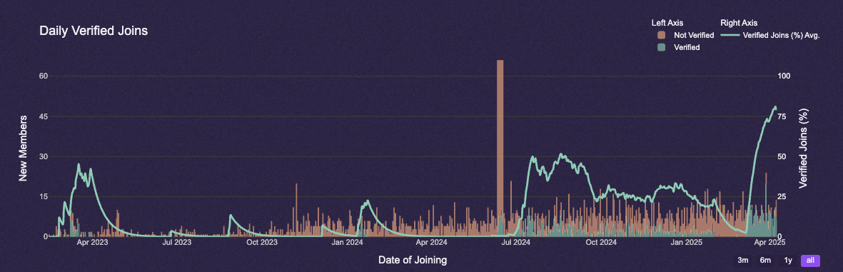 To streamline Discord interactions, it's crucial to refine your verification processes, targeting a seamless yet secure onboarding. You can find a lot of verification related analytics directly on our server insights dashboard.