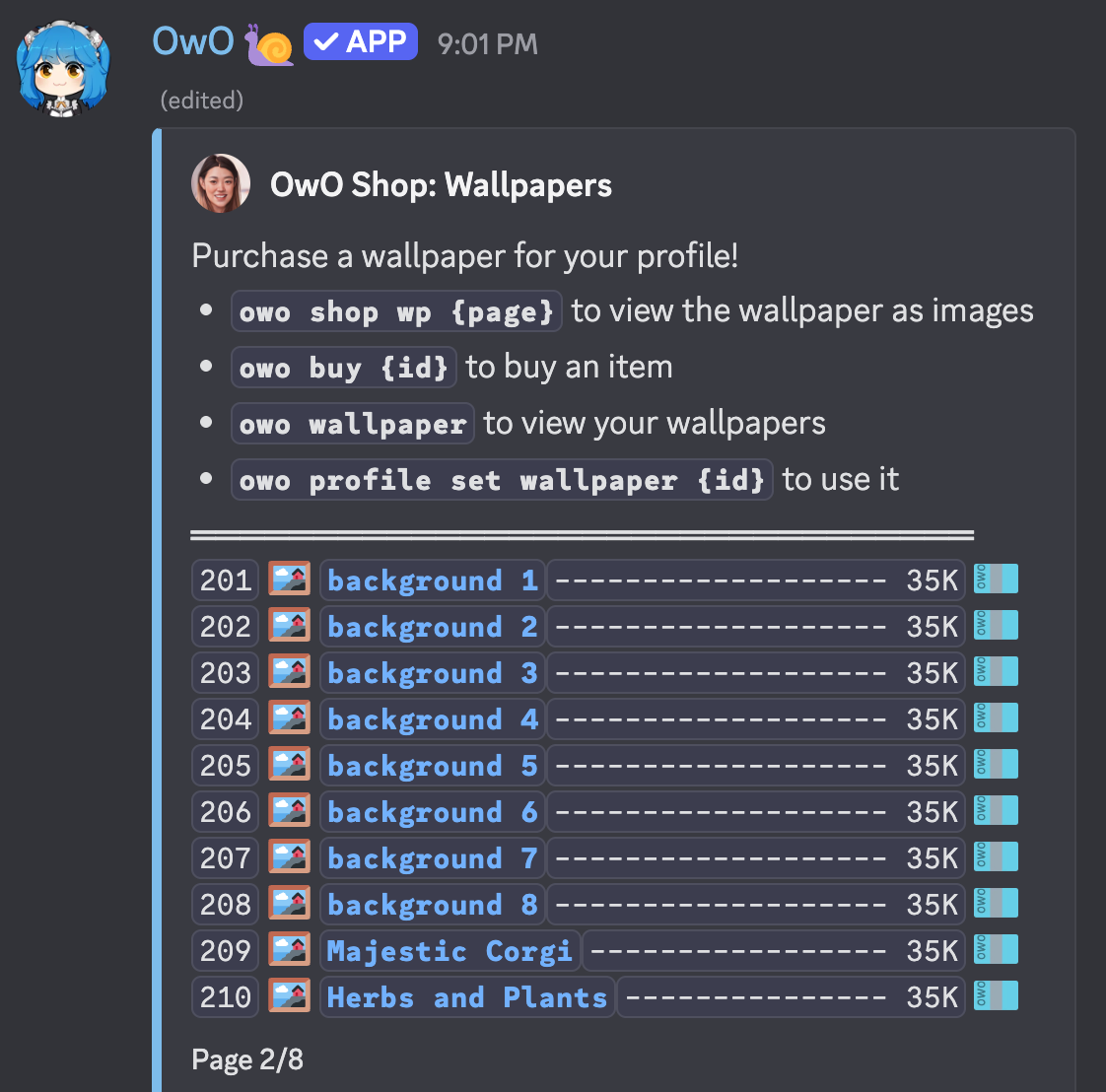 owo(case-insensitive). - Alternate Prefix: Many commands can be triggered with