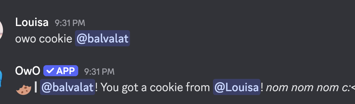 OwO even lets you owe cookies or praise to others (owo cookie @User gives someone a virtual cookie, and there are pray/curse commands as well). These don’t affect gameplay much but enhance the community feel – making OwO not just about stats, but also about friendly interactions and memes. The bot’s “owoify” command can even transform text into the silly “owo” speaking style. All these little features make OwO a social experience as much as a game, encouraging inside jokes and camaraderie in a server.
