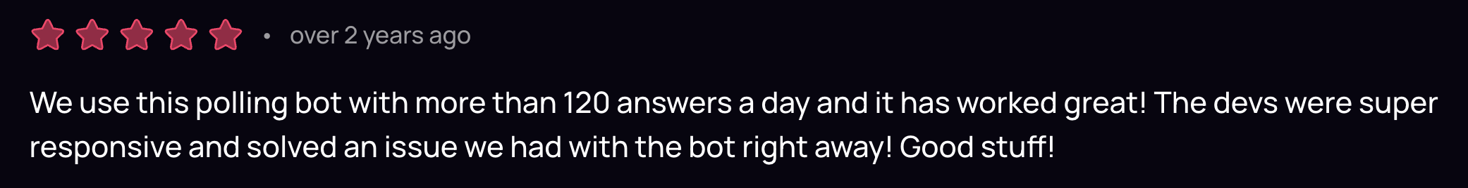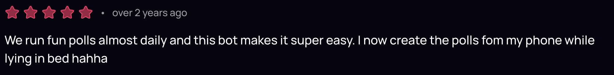 - Community Feedback & Voting: Many server moderators use Subo to ask their community about new ideas, feature preferences, or retrospective feedback on events. For example, a game server might survey players on what new features they’d like, or a content creator might poll fans about which topic to cover next. By keeping the survey in Discord, they get high response rates without forcing users to an external form. One testimonial came from a sports community server with 1000+ members that needed anonymous voting on sensitive questions – the admin noted Subo was “the perfect bot where no other poll solution did the job,” allowing truly anonymous polls and role-restricted voting in a large server